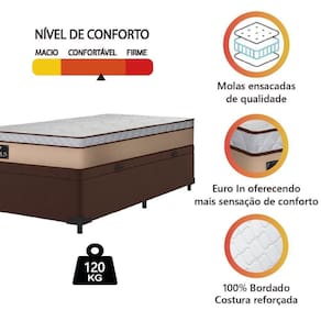 REVESTIMENTO INTERIOR: Molas ensacadas de qualidade que permitem que o colchão suporte até 120kg por pessoa, oferecendo conforto e estabilidade durante o sono