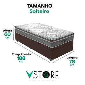A tecnologia que a sua casa merece está na V-Store! O colchão Ibiza combina Molas Ensacadas, espuma de alta performance e sistema EPS, oferecendo suporte, conforto térmico e design moderno para noites revigorantes. Já a Base Box Baú Bravus une funcionalidade e elegância, com estrutura resistente, revestimento em tecido sintético e amplo espaço para armazenamento, ideal para otimizar o quarto com estilo..Característica Do Colchão: Modelo: IbizaMarca: V-StoreTamanho: SolteiroDimensões: 88x22x188 (Largura x Altura x Comprimento)Conforto: intermediárioSistema: Molas EnsacadasPillow: Não se aplicaPeso Máximo recomendado: 150 kg (Por pessoa)Proteções: Antiácaro, antialérgico, antifungo, antimofoGarantia: 12 Meses (Espuma) / 10 anos ( Conjunto de Molas Ensacadas)Característica Da Base: Marca: V-StoreModelo: BravusCor do Box: MarromTamanho: SolteiroDimensões: 88x44x188 (Largura x Altura x Comprimento)Estrutura: MadeiraPeso máximo recomendado: 150 kg (Por Pessoa)Altura do Box: 38 cmAltura dos Pés: 6 cmAltura total: 44 cmGarantia: 12 Meses (Estrutura) / 3 meses (Tecido)Selo Ecologicamente CorretoAtenção:- Antes de finalizar sua compra, recomendamos que verifique se as dimensões do produto são adequadas para serem transportadas pelos elevadores, portas, escadas e corredores de sua residência. Ressaltamos que não nos responsabilizamos pelo transporte do produto por meios específicos, como escadas, guinchos ou içamentos.- É possível que hajam leves variações de cor de acordo com o dispositivo que está sendo utilizado como smartphones, computadores, monitores e outros.