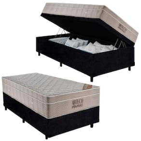 MEDIDAS BOX BAÚ CORINO PRETO ALTO NÍVEL + COLCHÃO AIRTECH SPRING ORTOBOM: