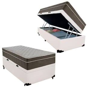 Cama Box Baú Solteiro Sintético + Colchão De Molas Ensacadas - - 88x188x69cm