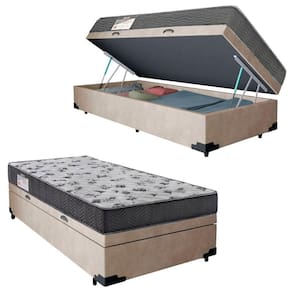 Cama Box Baú Solteiro Suede + Colchão De Espuma D33 - Serene - 88cm