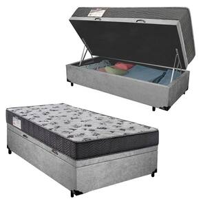 Cama Box Baú Solteiro Suede + Colchão De Espuma D33 - Serene - 88cm Cinza