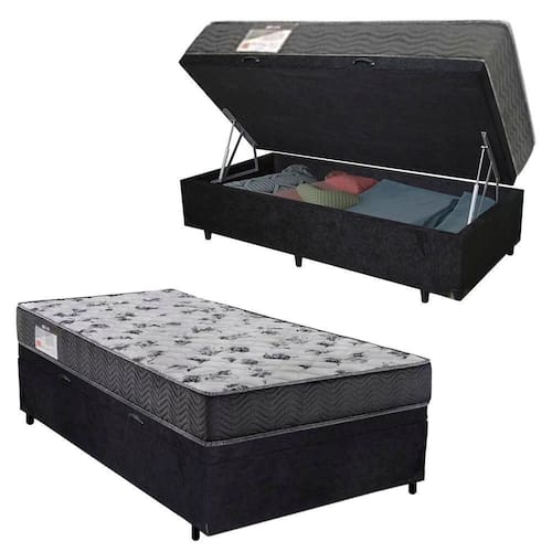 Cama Box Baú Solteiro Suede + Colchão De Espuma D33 - Serene - 88cm Preto