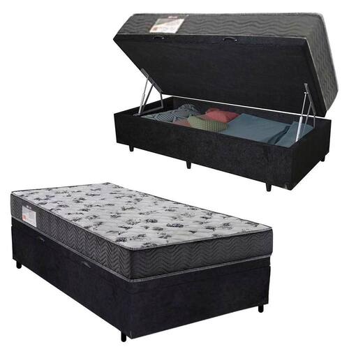 Cama Box Baú Solteiro Suede + Colchão De Espuma D33 - Serene - 88cm
