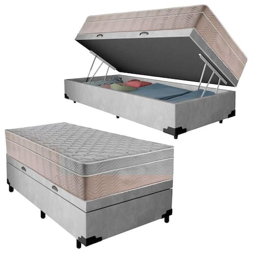 Cama Box Baú Suede Solteiro + Colchão Sereneprime Molas Ensacadas 88x188x69 Cinza - Blush