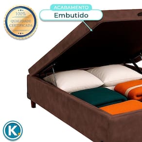 Cama Box Bau Viuvo Blindado Nature Marrom 128x188 Base baú viuvo com 42cm de altura e amplo espaço interno para organização Revestimento em Veludo , fácil de limpar e com visual moderno