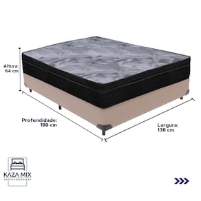 O conforto que sua casa precisa e a qualidade que você merece está na Kazamix!Redefina suas noites de sono com o Colchão Pampa Molas Ensacadas, projetado para oferecer máximo conforto e suporte. Suas molas ensacadas individualmente garantem estabilidade, minimizando vibrações e proporcionando um descanso tranquilo. O Ortopillow com tecido em poliéster de alta resistência e bordado matelassê acrescenta uma camada extra de maciez e conforto. Com tratamento antiácaro, antifungo e tecnologia No Turn, é ideal para quem busca praticidade e um ambiente de sono mais saudável. Este colchão combina qualidade e durabilidade para oferecer uma experiência de descanso incomparável.Modelo: Pampa Marca: OrtobomTamanho: CasalDimensões: 138x188X24 (Largura x Comprimento x Altura)Conforto: MacioSistema: Molas ensacadas Pillow: Euro PillowPeso Máximo recomendado: 120 kg (Por pessoa)Proteções: Antiácaro, antialérgico, antifungo, antimofoGarantia: 1 ano pelo FabricanteO conforto que sua casa precisa e a qualidade que você merece está na Kazamix!Eleve o conforto e a sofisticação do seu quarto com a Cama Box!Produzida em madeira de reflorestamento reforçada, a Cama Box combina qualidade, durabilidade e um design elegante, que confere leveza e modernidade ao seu dormitório. Sua estrutura robusta suporta até 150 kg por pessoa, garantindo a sustentação perfeita para o colchão e prolongando a vida útil do produto.Com uma altura ergonômica, ela oferece maior conforto ao deitar e levantar, enquanto o acabamento de alta qualidade se adapta a qualquer estilo de decoração, unindo praticidade e estilo.Não perca tempo! Adquira agora mesmo a sua Cama Box e transforme seu dormitório com conforto e elegância.Marca: KazaMixModelo: BoxCor do Box: BegeTamanho: CasalDimensões: 138X188X35 (Largura x Comprimento x Altura) Estrutura: MadeiraPeso máximo recomendado: 150 kg (Por Pessoa)Altura do Box: 25 cm Altura dos Pés: 10 cm Altura total: 35 cm Garantia: 03 mesesSelo Ecologicamente CorretoAtenção: Antes de finalizar sua compra, certifique-se de que as dimensões do produto sejam adequadas para serem transportadas pelos elevadores, portas, escadas e corredores de sua residência. Ressaltamos que não nos responsabilizamos pelo transporte do produto por meios específicos, como escadas, guinchos ou içamentos.