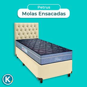 Cama + Box Bege e Colchão Molas Ensacadas Solteiro - Petrus Paropas + Cabeceira