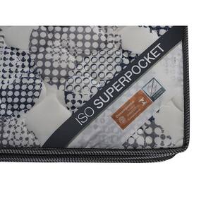 Colchão Iso Superpocket tem sua estrutura em molas Superpocket (ensacadas individualmente) que reduzem a vibração ao longo de sua superfície, garantindo mais conforto e perfeita acomodação, além de permitir que uma pessoa se movimente sem incomodar quem está ao lado. O molejo é suportado pela tecnológica placa EPS. Possui Ortopillow com tecido em Poliéster plano de alta resistência e bordado em matelassê, que maximiza a sensação de maciez. Devido a tecnologia No Turn, o Iso Superpocket não precisa ser virado. Possui tratamento antiácaro e antifungos.