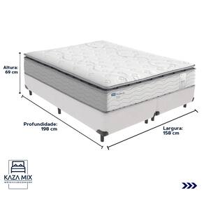 O conforto que sua casa precisa e a qualidade que você merece está na Kazamix!Colchão Probel Amsterdã – a escolha perfeita para noites de sono inigualáveis. Equipado com Molas Ensacadas Prolastic, oferece suporte individualizado, reduzindo a transferência de movimentos para um descanso mais tranquilo. Seu Pillow Top Super proporciona uma camada extra de maciez, elevando o conforto e garantindo uma experiência de luxo.Com camadas de espuma D33 e D65, o Amsterdã combina firmeza e durabilidade, enquanto as proteções antiácaro, antialérgico e antifungo criam um ambiente de sono saudável.Invista em qualidade e bem-estar com o Colchão Probel Amsterdã e transforme suas noites.Modelo: AmsterdãMarca: ProbelTamanho: QueenDimensões: 158x198X34 (Largura x Comprimento x Altura)Conforto: FirmeSistema: Molas EnsacadasPillow: Pillow TopPeso Máximo recomendado: 120 kg (Por pessoa)Proteções: Antiácaro, antialérgico, antifungo, antimofoGarantia: 1 ano pelo FabricanteO conforto que sua casa precisa e a qualidade que você merece está na Kazamix!Eleve o conforto e a sofisticação do seu quarto com a Cama Box!Produzida em madeira de reflorestamento reforçada, a Cama Box combina qualidade, durabilidade e um design elegante, que confere leveza e modernidade ao seu dormitório. Sua estrutura robusta suporta até 150 kg por pessoa, garantindo a sustentação perfeita para o colchão e prolongando a vida útil do produto.Com uma altura ergonômica, ela oferece maior conforto ao deitar e levantar, enquanto o acabamento de alta qualidade se adapta a qualquer estilo de decoração, unindo praticidade e estilo.Não perca tempo! Adquira agora mesmo a sua Cama Box e transforme seu dormitório com conforto e elegância.Marca: KazaMixModelo: BoxCor do Box: BrancoTamanho: QueenDimensões: 158X198X35 (Largura x Comprimento x Altura) Estrutura: MadeiraPeso máximo recomendado: 150 kg (Por Pessoa)Altura do Box: 25 cm Altura dos Pés: 10 cm Altura total: 35 cm Garantia: 03 mesesSelo Ecologicamente CorretoAtenção: Antes de finalizar sua compra, certifique-se de que as dimensões do produto sejam adequadas para serem transportadas pelos elevadores, portas, escadas e corredores de sua residência. Ressaltamos que não nos responsabilizamos pelo transporte do produto por meios específicos, como escadas, guinchos ou içamentos.
