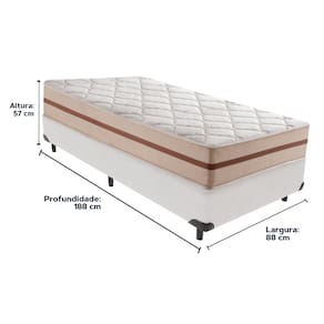 O conforto que sua casa precisa e a qualidade que você merece está na Kazamix!O Colchão Classic da Anjos é a escolha perfeita para quem busca o equilíbrio entre conforto, durabilidade e custo-benefício. Com molas ensacadas, proporciona suporte individualizado, garantindo noites de sono mais tranquilas e sem transferência de movimento. O conforto intermediário atende a diferentes preferências, enquanto o design clean, com superfície plana, traz um toque de modernidade ao ambiente.Além disso, conta com tratamento antiácaro, antialérgico e antifungo, promovendo um sono mais saudável e livre de alergias. Um investimento ideal para transformar suas noites e garantir bem-estar diariamente. Aproveite o conforto e a qualidade que você merece!Modelo: Classic 22Marca: AnjosTamanho: SolteiroDimensões: 88x188X22 (Largura x Comprimento x Altura)Conforto: IntermediárioSistema: Molas ensacadas Pillow: Não se AplicaPeso Máximo recomendado: 120 kg (Por pessoa)Proteções: Antiácaro, antialérgico, antifungo, antimofoGarantia: 1 ano pelo FabricanteO conforto que sua casa precisa e a qualidade que você merece está na Kazamix!Eleve o conforto e a sofisticação do seu quarto com a Cama Box!Produzida em madeira de reflorestamento reforçada, a Cama Box combina qualidade, durabilidade e um design elegante, que confere leveza e modernidade ao seu dormitório. Sua estrutura robusta suporta até 150 kg por pessoa, garantindo a sustentação perfeita para o colchão e prolongando a vida útil do produto.Com uma altura ergonômica, ela oferece maior conforto ao deitar e levantar, enquanto o acabamento de alta qualidade se adapta a qualquer estilo de decoração, unindo praticidade e estilo.Não perca tempo! Adquira agora mesmo a sua Cama Box e transforme seu dormitório com conforto e elegância.Marca: KazaMixModelo: BoxCor do Box: BrancoTamanho: SolteiroDimensões: 88X188X35 (Largura x Comprimento x Altura) Estrutura: MadeiraPeso máximo recomendado: 150 kg (Por Pessoa)Altura do Box: 25 cm Altura dos Pés: 10 cm Altura total: 35 cm Garantia: 03 mesesSelo Ecologicamente CorretoAtenção: Antes de finalizar sua compra, certifique-se de que as dimensões do produto sejam adequadas para serem transportadas pelos elevadores, portas, escadas e corredores de sua residência. Ressaltamos que não nos responsabilizamos pelo transporte do produto por meios específicos, como escadas, guinchos ou içamentos.