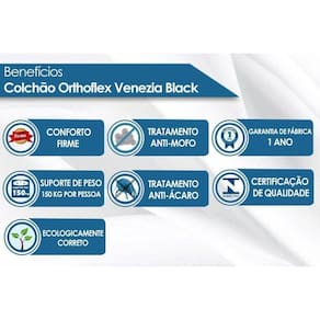 Abaixo segue os produtos do KIT: Cama Box c/ Auxiliar Solteiro: Colchão Orthoflex Bonnel Venezia Black + Base CRC Courano Black (88x188)