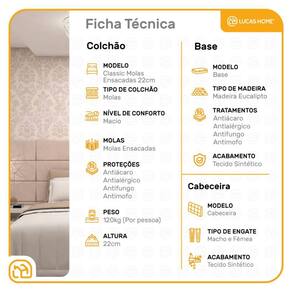 A base box é confeccionada com madeira de reflorestamento, tratamentos anticupim e antimofo. Seu revestimento de alta qualidade agrega valor e sofisticação ao quarto.