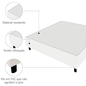 O Box é um excelente produto para você que busca um produto moderno e prático. É feito de tecido reforçado e nobre, possui estrutura resistente, um belo acabamento e é um produto de fácil limpeza. Todo produzido com um material firme, como Eucalipto e Pinus. Proporciona para o seu quarto melhor aproveitamento de espaço e um design moderno. Deixará o ambiente mais belo e prático. Acompanha jogo de pés em PVC.