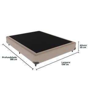 Marca: KazaMix Modelo: Box Cor do Box: Bege Tamanho: Casal Dimensões: 138X188X35 (Largura x Comprimento x Altura) Estrutura: Madeira Peso máximo recomendado: 150 kg (Por Pessoa) Altura do Box: 25 cm Altura dos Pés: 10 cm Altura total: 35 cm Garantia: 03 meses Selo Ecologicamente Correto