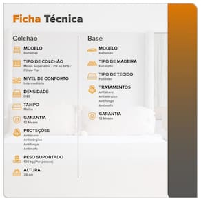 Um colchão precisa de um ótimo box para ficar seguro e estável, que seja forte e bonito e é isso que nosso box oferece. O box é produzido com madeira de Eucalipto para garantir uma estrutura firme e resistente. O acabamento em suede dá um toque sofisticado e moderno à base, facilitando também a limpeza dela. Para proporcionar ainda mais estabilidade, os pés são de plástico.