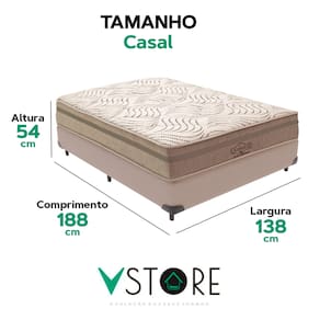 A tecnologia que a sua casa merece está na V-Store! O Conjunto Colchão Los Angeles + Base Box Baú Bravus da V-Store oferece conforto e funcionalidade. O colchão, com molas ensacadas e sistema EPS, garante suporte ideal, conforto térmico e proteção antiácaro. A base box, com amplo espaço de armazenamento, é feita de madeira reflorestada e revestida com tecido resistente, proporcionando praticidade e sofisticação ao seu quarto.Característica Do Colchão: Modelo: Los AngelesMarca: V-StoreTamanho: CasalDimensões: 138x28x188 (Largura x Altura x Comprimento)Conforto: MédioSistema: Molas EnsacadasPillow: Não se aplicaPeso Máximo recomendado: 150 kg (Por pessoa)Proteções: Antiácaro, antialérgico, antifungo, antimofoGarantia: 12 Meses (Espuma) / 10 anos ( Conjunto de Molas Ensacadas)Característica Da Base: Marca: V-StoreModelo: BravusCor do Box: BegeTamanho: CasalDimensões: 138x44x188 (Largura x Altura x Comprimento)Estrutura: MadeiraPeso máximo recomendado: 150 kg (Por Pessoa)Altura do Box: 26 cmAltura dos Pés: 6 cmAltura total: 44 cmGarantia: 12 Meses (Estrutura) / 3 meses (Tecido)Selo Ecologicamente CorretoAtenção:- Antes de finalizar sua compra, recomendamos que verifique se as dimensões do produto são adequadas para serem transportadas pelos elevadores, portas, escadas e corredores de sua residência. Ressaltamos que não nos responsabilizamos pelo transporte do produto por meios específicos, como escadas, guinchos ou içamentos.- É possível que hajam leves variações de cor de acordo com o dispositivo que está sendo utilizado como smartphones, computadores, monitores e outros.