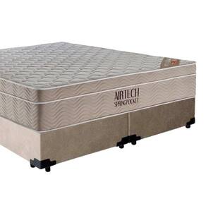 Cama Box Casal Bipartido Sintético + Colchão Ortobom Airtech Molas Ensacadas 65x138x188 Bege