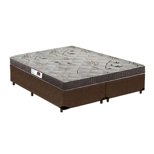 Cama Box Casal Colchão Espuma D33 Bordado + Box Sintético Marrom 47x138x188