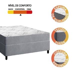 MEDIDAS:: A = 57 cm / 45 cm (sem pés) L = 138 cm P = 188 cm | MODELO:: EGITO | MARCA COLCHÃO:: Portobel | MARCA BOX:: Prince | REVESTIMENTO INTERIOR:: Espuma D28 de qualidade, que faz com que o colchão suporte até 100kg por pessoa, garantindo durabilidade e conforto | POSSUI EPS:: Sim | TECIDO BOX:: Suede veludo | COR:: Cinza/Branco | REVESTIMENTO SUPERIOR:: Possui revestimento do tampo em tecido poliéster, especialmente selecionado para garantir uma sensação agradável ao toque e um acabamento sofisticado. | REVESTIMENTO LATERAL:: Tecido suede que permite melhor ventilação, proporcionando conforto térmico e toque macio | PÉS:: 6 | MATERIAL DOS PÉS:: Plástico | ALTURA DOS PÉS:: 12cm | Peso:: 43kg | PESO SUPORTADO:: 100kg por pessoa | ITENS INCLUSOS:: 1 Colchão de 1,38m e 1 box de 1,38m | GARANTIA COLCHÃO:: 6 meses pelo Fabricante | GARANTIA BOX:: 3 meses pelo fabricante | AVISO:: A Esplanada Móveis se responsabiliza pela entrega dos produtos adquiridos até a porta de entrada ou portaria do endereço indicado, se a portaria do condomínio permitir, as entregas são efetuadas no piso térreo. Cor: Cinza / Branco