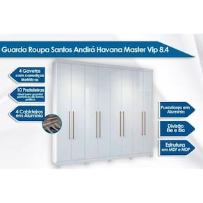 Guarda Roupa Casal 8 Portas e 4 Gavetas Master Vip 8.4 Branco - Santos Andirá