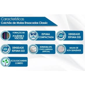 Colchão Casal Molas Ensacadas MasterPocket Classic Euro Pillow Clean (138x188x22) - Anjos