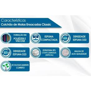 Colchão Casal Molas Ensacadas MasterPocket Classic Euro Pillow Clean (138x188x26) - Anjos