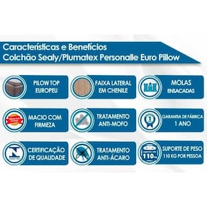 Colchão Casal Molas Ensacadas MasterPocket Personalle Euro Pillow (138x188x30) - Plumatex
