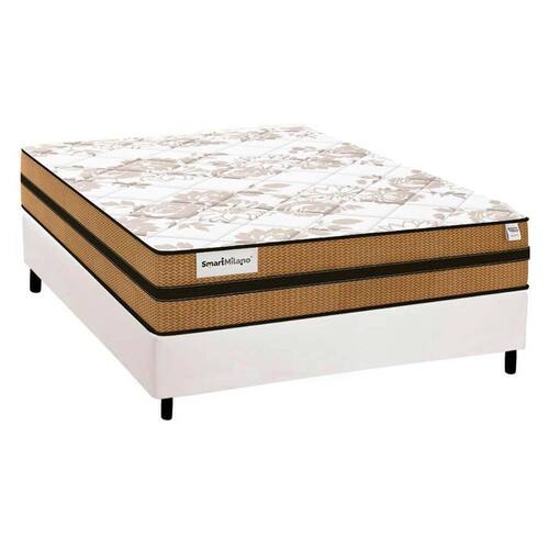 Cama Box Casal: Colchão Molas MasterPocket Ensacadas Plumatex Smart Milano + Base CRC Courano Branco(138x188) - Blush
