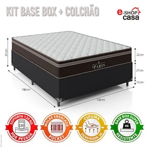 Cama Box Casal + Colchão Paris Molas Ensacadas - e-Shop Casa