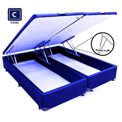 Cama Box Casal com Bau Pistão a gás azul Bipartido - 138x188x43