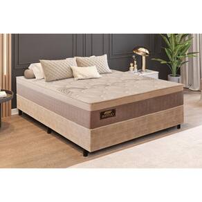 Características: - Base resistente e sustentável: estrutura em madeira de eucalipto reflorestada com elegante revestimento em tecido suede. - Pés de madeira: estabilidade reforçada e um visual que traz charme e leveza ao ambiente. - Conforto inteligente: colchão com molas ensacadas Blue Wave, que se adaptam aos movimentos do corpo e reduzem a transferência de impacto. - Aconchego na medida certa: possui EPS, manta de espuma D33, Pillow Euro Top e conforto firme. - Toque suave ao dormir: colchão revestido em malha. - Peso máximo suportado no colchão: 260kg (130kg de cada lado). - Certificação INMETRO (colchão): OCP 005 ABNT - Fabricante: Gazin
