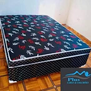 Estrutura em madeira Eucalipto Domus, tecido Poliéster com bordado em Matelassê, tampo com espuma selada certificada pelo INMETRO. Acompanha jogo de Pés. Possui tratamento antialérgico e antiácaro.
