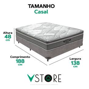 A tecnologia que a sua casa merece está na V-Store! O Conjunto Colchão Ibiza + Base Box Bravus Solteiro da V-Store é a escolha perfeita para quem busca conforto, durabilidade e elegância. O colchão, com Molas Ensacadas e espuma de alta performance, proporciona suporte ideal e conforto intermediário, além de ser protegido contra ácaros, fungos e alergias. A Base Box Bravus, fabricada em madeira reflorestada e revestida com tecido sintético, combina resistência, praticidade e um design sofisticado. Juntos, eles oferecem uma solução completa para transformar seu dormitório com qualidade e estilo. Característica Do Colchão: Modelo: IbizaMarca: V-StoreTamanho: CasalDimensões: 138x22x188 (Largura x Altura x Comprimento)Conforto: intermediárioSistema: Molas EnsacadasPillow: Não se aplicaPeso Máximo recomendado: 150 kg (Por pessoa)Proteções: Antiácaro, antialérgico, antifungo, antimofoGarantia: 12 Meses (Espuma) / 10 anos ( Conjunto de Molas Ensacadas)Característica Da Base: Marca: V-StoreModelo: BravusTamanho: CasalDimensões: 138x44x188 (Largura x Altura x Comprimento)Estrutura: MadeiraPeso máximo recomendado: 150 kg (Por Pessoa)Altura do Box: 26 cmAltura dos Pés: 6 cmAltura total: 44 cmGarantia: 12 Meses (Estrutura) / 3 meses (Tecido)Selo Ecologicamente CorretoAtenção:- Antes de finalizar sua compra, recomendamos que verifique se as dimensões do produto são adequadas para serem transportadas pelos elevadores, portas, escadas e corredores de sua residência. Ressaltamos que não nos responsabilizamos pelo transporte do produto por meios específicos, como escadas, guinchos ou içamentos.- É possível que hajam leves variações de cor de acordo com o dispositivo que está sendo utilizado como smartphones, computadores, monitores e outros.