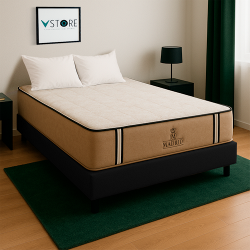 A tecnologia que a sua casa merece está na V-Store! O Conjunto Colchão Madrid + Base Box da V-Store é a combinação perfeita de conforto e praticidade. O colchão, com molas ensacadas e sistema EPS, proporciona noites de sono tranquilas, oferecendo suporte ideal e proteção contra ácaros e alergias. A base box, feita com madeira reflorestada e revestida com tecido sintético, garante resistência, durabilidade e facilidade de manutenção. Com capacidade para até 150 kg por pessoa, esse conjunto é ideal para quem busca qualidade, conforto e estilo no seu dormitório.Característica Do Colchão: Modelo: MadridMarca: V-StoreTamanho: CasalDimensões: 138x28x188 (Largura x Altura x Comprimento)Conforto: MédioSistema: Molas EnsacadasPillow: Não se aplicaPeso Máximo recomendado: 150 kg (Por pessoa)Proteções: Antiácaro, antialérgico, antifungo, antimofoGarantia: 12 Meses (Espuma) / 10 anos ( Conjunto de Molas Ensacadas)Característica Da Base: Marca: V-StoreModelo: BravusTamanho: CasalDimensões: 138x44x188 (Largura x Altura x Comprimento)Estrutura: MadeiraPeso máximo recomendado: 150 kg (Por Pessoa)Altura do Box: 26 cmAltura dos Pés: 6 cmAltura total: 44 cmGarantia: 12 Meses (Estrutura) / 3 meses (Tecido)Selo Ecologicamente CorretoAtenção:- Antes de finalizar sua compra, recomendamos que verifique se as dimensões do produto são adequadas para serem transportadas pelos elevadores, portas, escadas e corredores de sua residência. Ressaltamos que não nos responsabilizamos pelo transporte do produto por meios específicos, como escadas, guinchos ou içamentos.- É possível que hajam leves variações de cor de acordo com o dispositivo que está sendo utilizado como smartphones, computadores, monitores e outros.