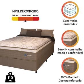 Cama Box Casal King Colchão Molas Ensacadas Guarda Costas Alameda 193x203x68cm Suede Marrom/branco