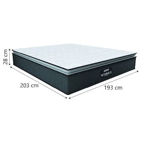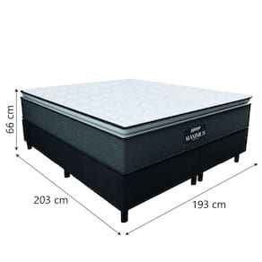 MEDIDAS: [ A ] = 66 cm / 54 cm (sem pés) [ L ] = 193 cm [ P ] = 203 cm ALTURA DOS PÉS: 12 cm PESO: 80,86kg PESO SUPORTADO: 120kg por pessoa MODELO: Cama Box Casal King Colchão Molas Ensacadas Pillow Top Maximus 193x203x66cm MARCA COLCHÃO: Gazin MARCA DO BOX: Prince COR: Cinza / Preto REVESTIMENTO SUPERIOR: Malha bordada, tecido que permite melhor ventilação, proporcionando conforto térmico e toque macio REVESTIMENTO LATERAL: Tecido suede macio, especialmente selecionado para garantir uma sensação agradável ao toque e um acabamento sofisticado REVESTIMENTO INTERIOR: Molas ensacadas que permitem que o colchão suporte até 120kg por pessoa, oferecendo conforto e estabilidade durante o sono REVESTIMENTO INFERIOR: Tecido antiderrapante MOLEJO: Molas ensacadas Soft Pillow POSSUI EPS: Sim ESPUMA: Camada de espuma D28 EURO/PILLOW: Pillow Top TECIDO BOX: Suede PÉS: 9 MATERIAL DOS PÉS: Plástico EURO/PILLOW: Pillow top oferecendo ainda mais sensação de conforto. EPS: Sim OBSERVAÇÃO: Box desmontável ITENS INCLUSOS: 1 Colchão 1,93m de e 1 Box desmontável de 1,93m GARANTIA COLCHÃO: 12 Meses pelo Fabricante GARANTIA BOX: 3 Meses pelo Fabricante