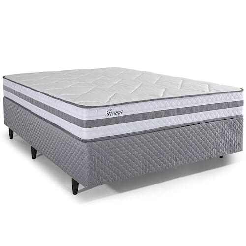 Cama Box Casal Herval Parma, 61x138x188 cm, Molas Ensacadas, Cinza