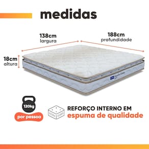 ITENS INCLUSOS: 1 colchão casal de 138 cm, 1 box casal de 138 cm