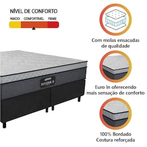 Cama Box Casal Queen Colchão Gazin Maximus Molas Ensacadas 158x198x62cm Cinza-Preto Suporta até 120Kg por Pessoa