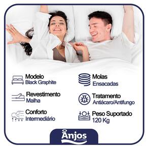 Cama Box Casal Sintético + Colchão Anjos Black Graphite Molas Ensacadas 138x188x64cm O Colchão Casal Anjos com Molas Ensacadas 138x188 Black Graphite é mais do que apenas uma peça de mobiliário para dormir; é uma experiência de conforto e qualidade incomparável. Desenvolvido com precisão e cuidado pela renomada marca Anjos, este colchão promete uma noite de sono revigorante e relaxante, como se estivesse sendo acariciado pelas próprias nuvens. O destaque deste colchão reside em seu sistema de molas ensacadas, que oferece um suporte individualizado para cada parte do corpo, garantindo uma distribuição equilibrada do peso e uma adaptação perfeita aos contornos naturais. Isso significa que, mesmo que você tenha um parceiro de sono, não sentirá os movimentos dele durante a noite, permitindo que ambos desfrutem de uma tranquilidade ininterrupta. **As cores do produto podem variar de acordo com o monitor, a iluminação do ambiente e a sua percepção visual.** **Confira as dimensões do produto e certifique-se de que passará normalmente por supostos elevadores, portas, escadas e/ou corredores de sua residência** Características Colchão: Colchão com 24cm de altura, tecido do tampo poliester, espuma D26 e molas ensacadas, colchão indicado para biotipos até 120kg Dimensões: 138x188x24cm Peso (Kg): 36 kilos Marca: Anjos Colchões Tamanho: Casal Cor: Preto Modelo: Black Graphite Material: Revestimento do tampo em tecido 100% poliester, faixa em tecido poliester liso; estofamento em espuma D26; molas ensacadas 2.0mm; base em poliestireno expandido (EPS) com isolamento termico e tratamento actigard (anti-acaros, bacterias e fungos). Tipo (Espuma, Densidade, Mola): Molas Ensacadas Garantia: 12 Meses Itens Inclusos: 1 Colchão Características do Box: - Estrutura Interna: Estrutura em madeira 100% de Reflorestamento; - Estrutura Externa: Sintético; - Tratamento Antiácaro: Sim; - Tratamento Antialérgico: Sim; - Saida de Ventilação: Não; - Ortopedico: Não; - Tecido Antiderrapante: Não; - Suporta até (kg): 150 Kg; - Necessita Montagem: Não. - Altura: 28cm; - Largura: 138cm; - Comprimento: 188cm; - Altura dos Pés: 12cm; Confira as dimensões do produto e certifique-se de que passará normalmente por elevadores, portas, escadas ou corredores de sua residência, pois é de sua total responsabilidade caso o produto tenha dimensões superiores ao local de acesso da entrega dificultando ou impossibilitando que a mesma seja concluída. Não nos responsabilizamos, no ato da entrega, por subir escadas, corredores e elevadores ou transporte por guincho em apartamentos. Imagens meramente ilustrativas a cor, pode variar de acordo com a iluminação do ambiente.