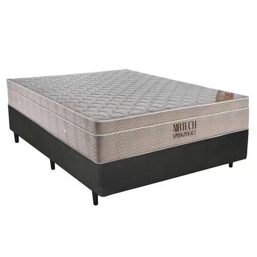 Cama Box Casal Sintético + Colchão Ortobom Airtech Molas Ensacadas 138x188x65 - Cinza
