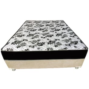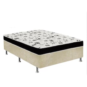 Cama Box Casal Suede Bege + Colchão Casal Suede Preto Orto Molas Bonnel 138x188x55