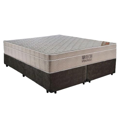 Cama Box Casal Suede Bipartido Marrom + Colchão Ortobom Airtech Molas Ensacadas 65x138x188