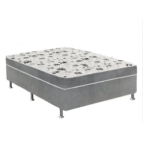 Cama Box Casal Suede Cinza + Colchão Casal Suede Cinza Orto Molas Bonnel 138x188x55