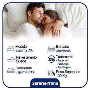 O Conjunto Cama Box Casal + Colchão De Espuma D33 é uma combinação exclusiva da Serene que oferece uma solução completa, praticidade e agilidade na aquisição de sua nova cama. O Colchão De Espuma D33 possui revestimento em poliéster e viscose. É indicado para pessoas de até 100kg proporcionando conforto firme, o que lhe confere firmeza suficiente para preservar sua coluna durante o sono sem comprometer seu conforto. A Base Box é confeccionada com estrutura de madeira 100% reflorestada com tratamentos anticupim e antimofo, proporcionando alta durabilidade e resistência do produto. Possui excelente acabamento, totalmente em material (tecido) Suede com cantoneiras plásticas para proteção, o que lhe confere requinte e sofisticação em qualquer ambiente;