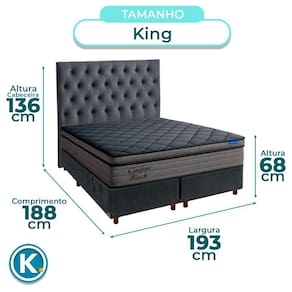 Modelo: Universal Marca: Nature Tamanho: King Tecido: Veludo Largura: 193cm Comprimento: 203cm Altura: 25cm Altura dos Pés: 13cm Material dos Pés: Madeira Suporte de Peso: 150Kg Peso: 40Kg Garantia: 3 Meses