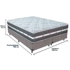 Marca: KazaMix Modelo: Box Cor do Box: Cinza Tamanho: Queen Dimensões: 158X198X35 (Largura x Comprimento x Altura) Estrutura: Madeira Peso máximo recomendado: 150 kg (Por Pessoa) Altura do Box: 25 cm Altura dos Pés: 10 cm Altura total: 35 cm Garantia: 03 meses Selo Ecologicamente Correto