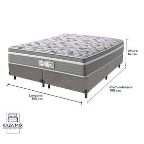 O conforto que sua casa precisa e a qualidade que você merece está na Kazamix!O Colchão Evolution é a escolha ideal para quem busca conforto, suporte e qualidade em cada noite de sono. Com Molas Ensacadas que oferecem um suporte individualizado, e um Pillow Euro que proporciona uma camada extra de suavidade, esse colchão transforma seu descanso em uma experiência de luxo.Com espuma D28 de alta densidade, o Evolution garante firmeza e conforto duradouros. Seu acabamento em poliéster diamante e bordado em matelassê trazem um toque de elegância e sofisticação ao seu ambiente.Além disso, o colchão é tratado com propriedades antiácaro e antialérgico, garantindo um sono mais saudável e seguro.Invista no seu bem-estar com o colchão Evolution, e experimente a combinação perfeita de conforto e durabilidade!Modelo: EvolutionMarca: ProbelTamanho: QueenDimensões: 158x198X32 (Largura x Comprimento x Altura)Conforto: IntermediárioSistema: Molas EnsacadasPillow: Euro PillowPeso Máximo recomendado: 110 kg (Por pessoa)Proteções: Antiácaro, antialérgico, antifungo, antimofoGarantia: 1 ano pelo FabricanteO conforto que sua casa precisa e a qualidade que você merece está na Kazamix!Eleve o conforto e a sofisticação do seu quarto com a Cama Box!Produzida em madeira de reflorestamento reforçada, a Cama Box combina qualidade, durabilidade e um design elegante, que confere leveza e modernidade ao seu dormitório. Sua estrutura robusta suporta até 150 kg por pessoa, garantindo a sustentação perfeita para o colchão e prolongando a vida útil do produto.Com uma altura ergonômica, ela oferece maior conforto ao deitar e levantar, enquanto o acabamento de alta qualidade se adapta a qualquer estilo de decoração, unindo praticidade e estilo.Não perca tempo! Adquira agora mesmo a sua Cama Box e transforme seu dormitório com conforto e elegância.Marca: KazaMixModelo: BoxCor do Box: CinzaTamanho: QueenDimensões: 158X198X35 (Largura x Comprimento x Altura) Estrutura: MadeiraPeso máximo recomendado: 150 kg (Por Pessoa)Altura do Box: 25 cm Altura dos Pés: 10 cm Altura total: 35 cm Garantia: 03 mesesSelo Ecologicamente CorretoAtenção: Antes de finalizar sua compra, certifique-se de que as dimensões do produto sejam adequadas para serem transportadas pelos elevadores, portas, escadas e corredores de sua residência. Ressaltamos que não nos responsabilizamos pelo transporte do produto por meios específicos, como escadas, guinchos ou içamentos.