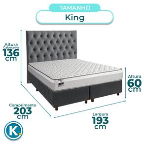 Conjunto King Colchão Hanover + Cama BoxColchão King com 22cm de altura, ideal para conforto e praticidade no dia a diaRevestimento em Jacquard e Poliéster, unindo sofisticação e resistênciaSuporte de até 130kg, oferecendo firmeza e segurança para diferentes perfisBase Box King Universal em VeludoMedidas Queen: 158x198cm, ideal para colchões maiores e mais espaçososEstrutura reforçada com suporte de até 150kg, garantindo segurança e durabilidadeFicha Técnica Colchão:Modelo: HanoverMarca: InducolTamanho: KingTecido: Jacquard/PoliésterLargura: 193cmComprimento: 203cmAltura: 22cmSuporte de Peso: 130KgGarantia: 3 MesesFicha Técnica Cama Box:Modelo: UniversalMarca: NatureTamanho: KingTecido: VeludoLargura: 193cmComprimento: 203cmAltura: 25cmAltura dos Pés: 13cmMaterial dos Pés: MadeiraSuporte de Peso: 150KgPeso: 40KgGarantia: 3 MesesAtenção:Antes da compra certifique-se de que o produto passa por elevadores, portas e corredores.As transportadoras não realizam entregas por escadas ou içamentos.Caso o item não caiba no elevador, a entrega será considerada concluída no térreo do prédio.A cor e tonalidade do produto pode variar de acordo com o dispositivo que o usuário está acessando.